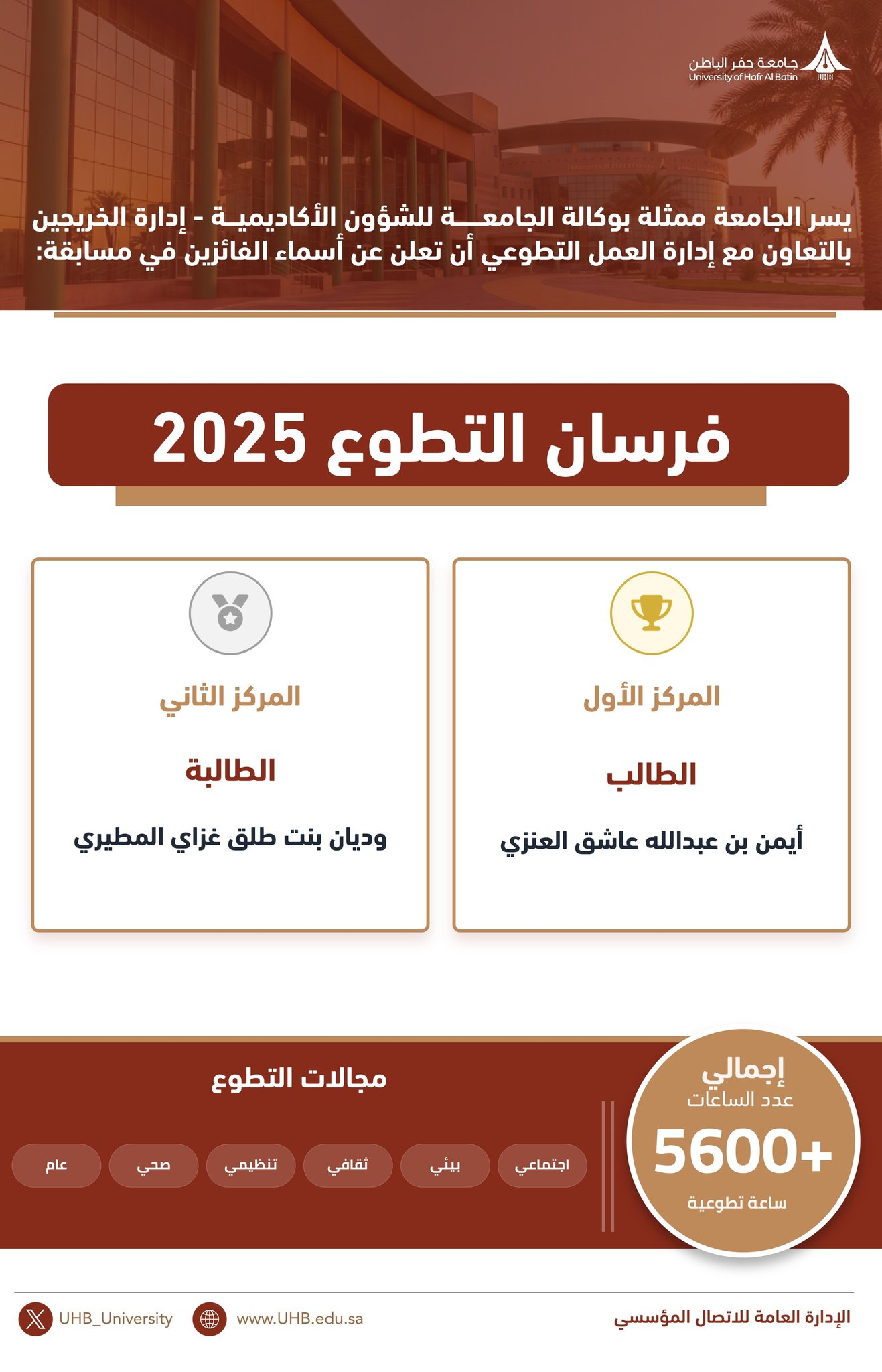 Announcements share this 31-12-2025 Announcing the names of the winners of the “Knights of Volunteering 2025” competition